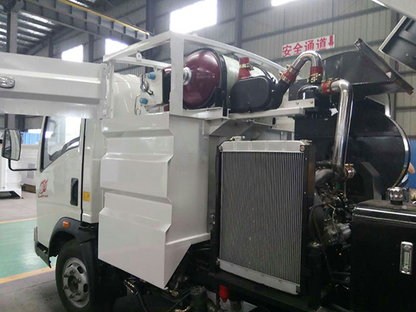 低压冲洗:利用离心水泵的低压力、大流量对路面进行冲洗作业,作洒水车用。
