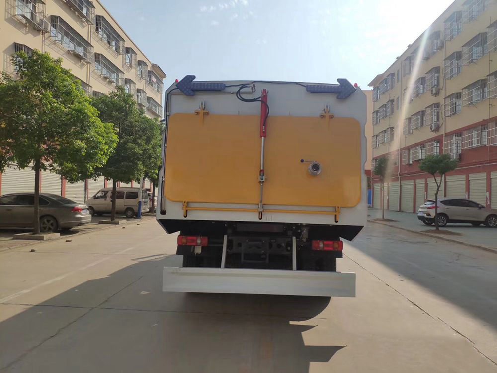 降尘:垃圾箱内分层设计,扬尘经过滤筒过滤后将清洁的空气排出,颗粒状垃圾直接进入垃圾箱内;雨天或潮湿路面时,通过切换风道,所有垃圾直接以重力沉降方式进入垃圾箱内。吸入车厢体内的垃圾和粉尘经惯性分离、冲击分离和过滤分离等三级除尘,采用**创的干式除尘清灰机构,实现过滤系统自动清灰。