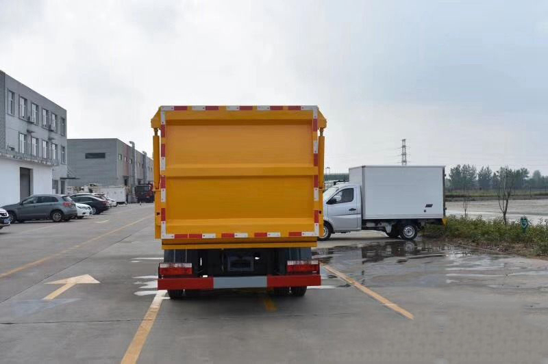 上装配置:新款箱体,美观大气,采用边三底四Q345锰板,箱体为武钢碳钢板材料,箱体内部做防腐防锈处理,弧形耐压箱体带全推装置,后门液压锁紧,整体密封性好,车尾部带厚橡胶密封条带污水收集槽,防污水滴漏,有效容积7.8方,采用江苏中梅多路阀,合肥长源液压泵,电动手动双操控系统,室内外均可操作,箱体侧方带挂桶架翻转上料机构,箱体可按要求喷绘图案和字样。